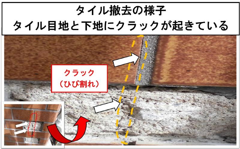 剥離によるタイルの落下事故につながりやすい
